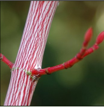 A superb, rare deciduous small tree whose branches are a glowing salmon-red with white stripes during Winter. Foliage turns bright yellow in the Autumn. Requires a fertile well drained slightly acid soil and full sun. Clear stem to 5ft, height eventually 12ft.