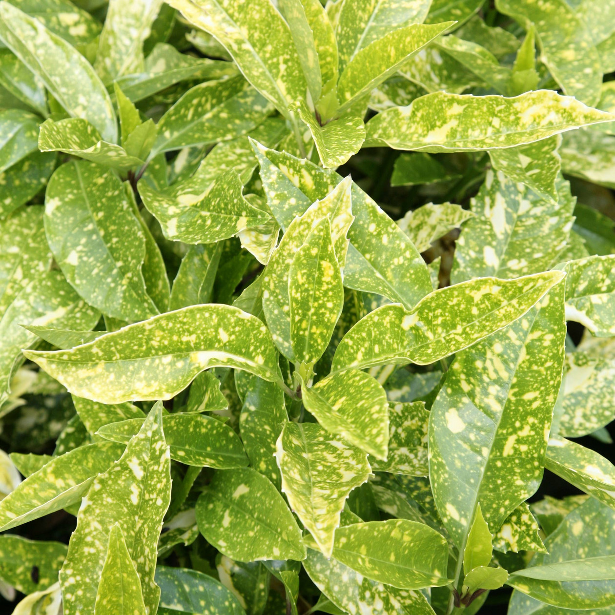 A lovely evergreen shrub whose large glossy leaves are richly variegated with gold. Produces clusters of bright red berries in Autumn. Requires a fertile well drained soil in sun or half shade. Height 4 feet in 10 years.
