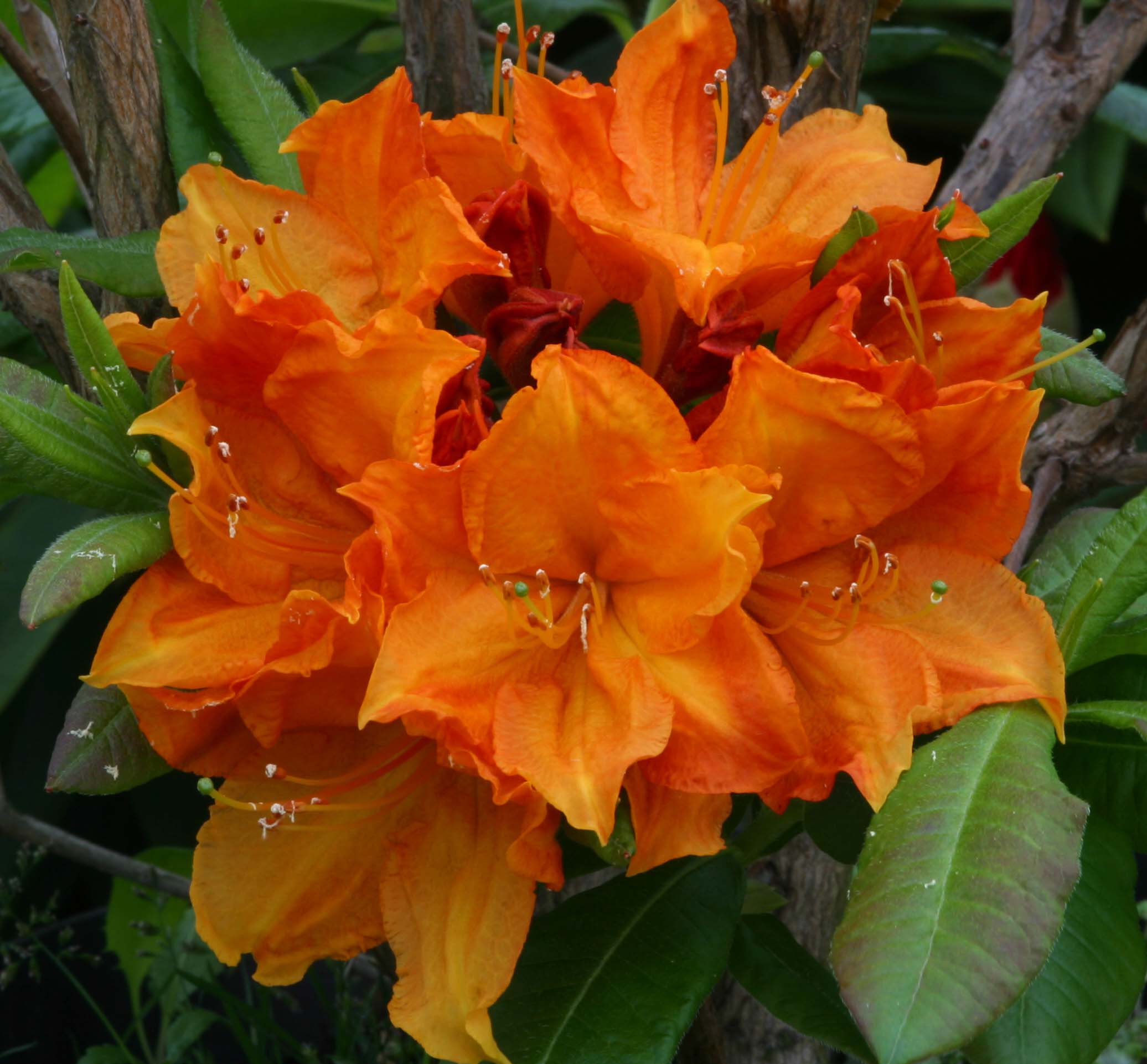 A medium sized deciduous shrub with coppery foliage, deep orange-red flowers are borne throughout May and June. Plant in an acid, woodland type soil, best in light shade. Height 4 to 5 feet.