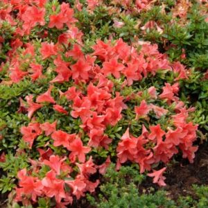 A dwarf, evergreen shrub which produces masses of vibrant, glowing orange trumpet shaped flowers in May & June. Requires a moist acid, peaty soil in sun or part shade. Height and spread 3ft.