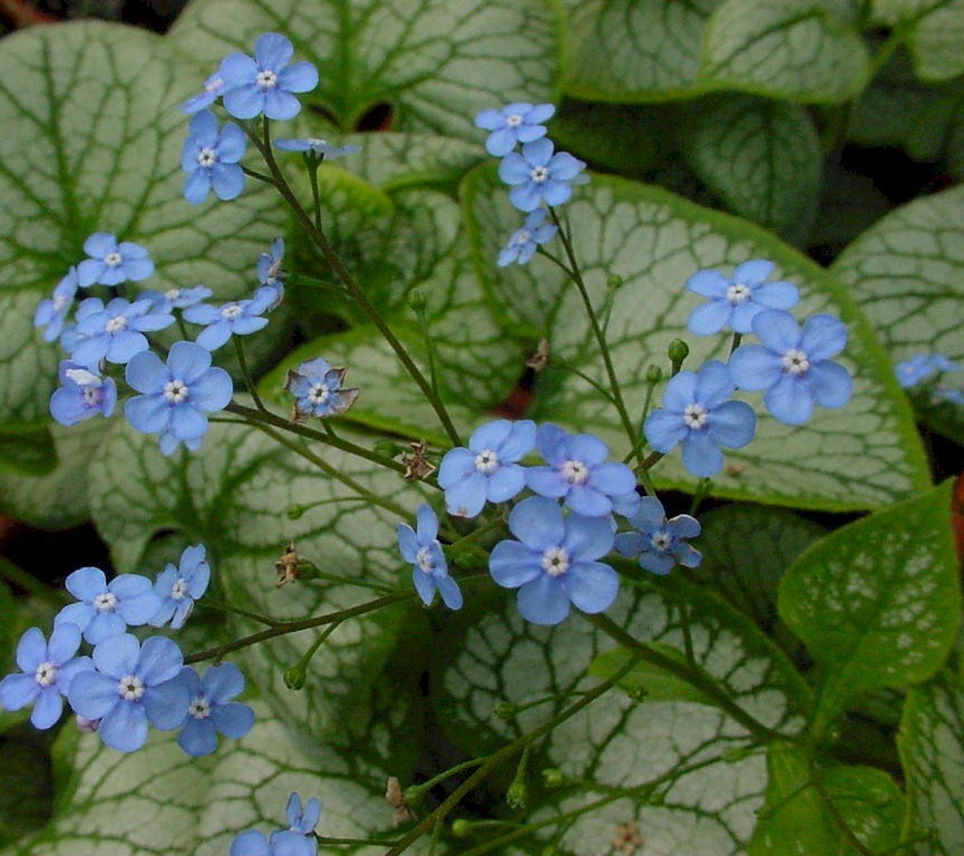 A fantastic groundcover, whose mid-green heart shaped leaves look as though they have been dusted with silver. Striking, forget-me-not blue flowers appear on dainty stems in May. Requires a fertile, well-drained soil in sun or part shade. Height 1ft.