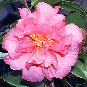 Evergreen shrub with large glossy leaves. Deep rose-salmon paeony-form flowers in March/April. Requires a fertile acid soil into which plenty of peat or composted bark has been worked. Best grown facing west or north. Height 6 to 8 feet in 10 years.
