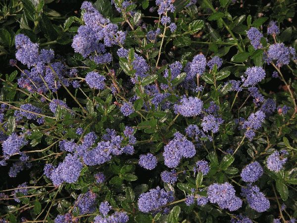 Superb evergreen shrub which is ideal for training out on a south facing wall. Rich blue flowers in May and June. Requires a fertile, well drained soil in sun. Height 6 to 8 feet.