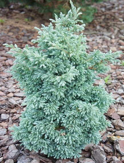 A slow growing evergreen conifer which forms an informal mound of striking feathery blue foliage. Ideal plant for the smaller border. Will grow in most fertile, moist, but well drained soils in sun or part shade. Height 2 feet in 10 years.