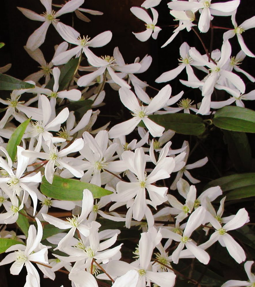 A superb vigorous evergreen climber with masses of white fragrant flowers in March/April. Prune when necessary after flowering in May. Requires a fertile well drained soil on a south facing wall or fence. Height 15 feet.