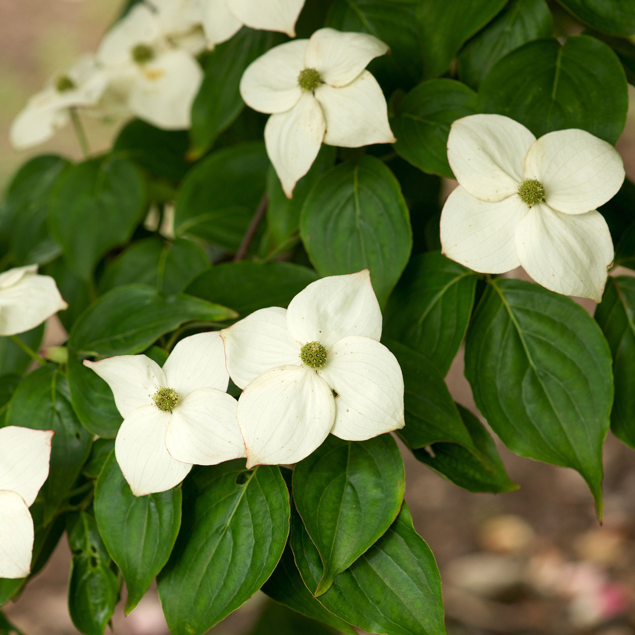 A superb deciduous shrub whose large bluish green leaves turn red in the Autumn. Long lasting white bracts are borne in May and June, followed by strawberry-like fruits. Requires a fertile, well drained soil in sun or part shade. Height 10 feet.