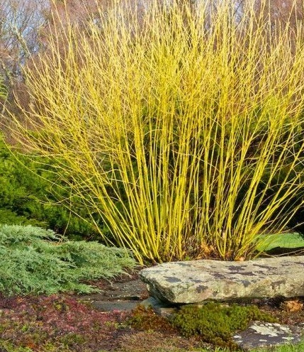 An outstanding deciduous shrub for the winter garden when it’s young branches turn a brilliant yellow. Outstanding orange-yellow autumn foliage. Prune hard back during the end of March. Will grow in most fertile, well drained soils in sun or part shade. Height 6 feet.