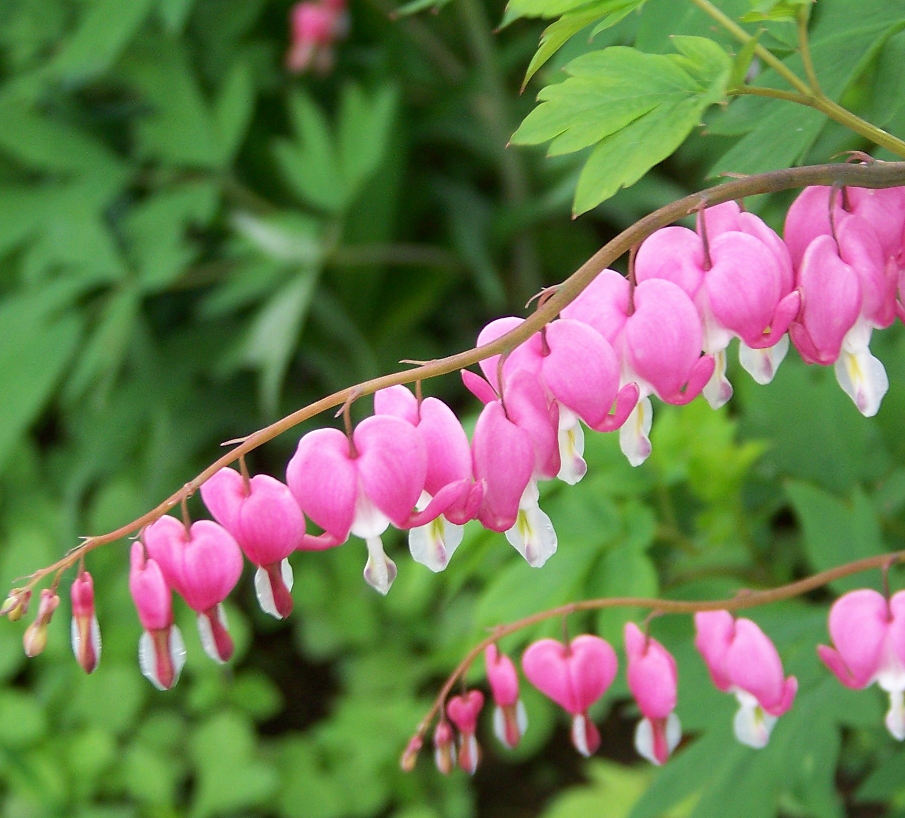 A fantastic perennial which has delicate, fern-like green leaves, through which emerge pale pink stems bearing juicy heart-shaped pink flowers during Spring and Summer. Requires a fertile, well-drained soil in partial shade. Height 6 inches.