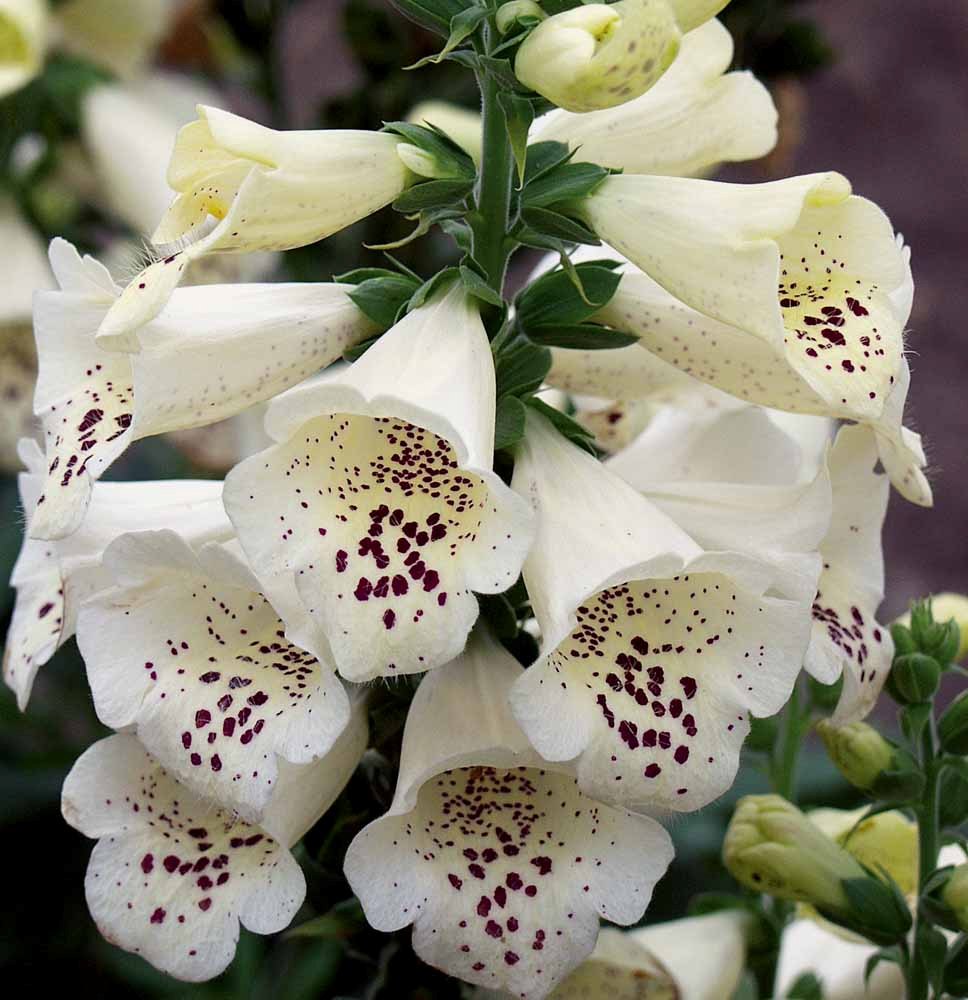 A great perennial for the back of the border and to add an English country garden feel. Sturdy upright stems are covered with creamy, bell shaped flowers, with flecks of deep burgundy to the throat. Requires a fertile, well-drained soil in full sun or partial shade. Height 5ft.