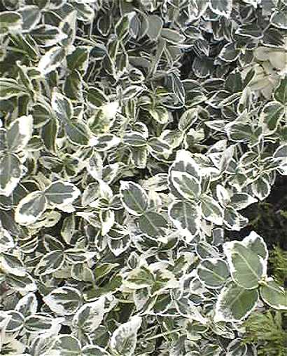 A low growing evergreen with green and silvery-cream leaves. Excellent ground cover in sun or part shade. Will grow in all but waterlogged soils. Will cling to a wall and climb to 8 feet, or as a bush reach a height of 2 feet. Mini-standard available.