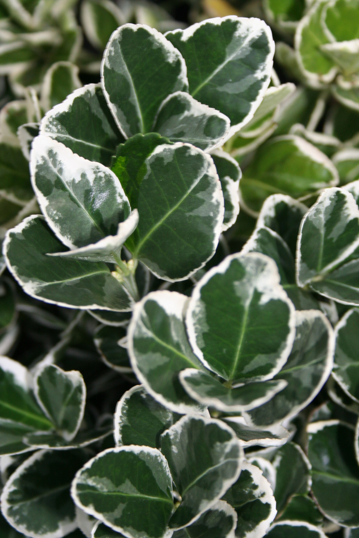 New. A lovely evergreen shrub whose glossy green leaves are edged with silvery white. Excellent container plant. Will grow in most fertile, moist but well drained soils in sun or part shade. Height up to 3 feet.