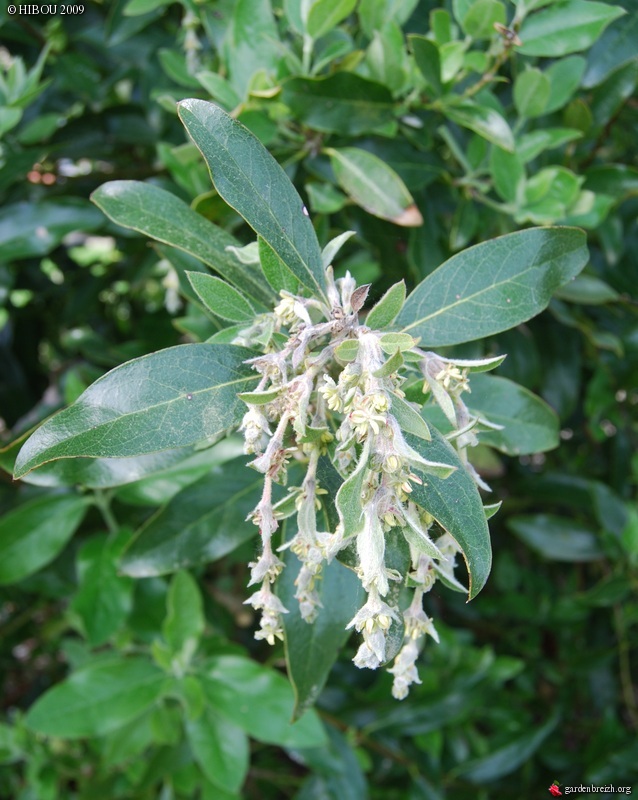 A vigorous evergreen shrub with glossy green leaves and grey-green catkins during January and February. Requires a fertile but well drained soil and shelter from the north-east. Height 10 to 15 feet.