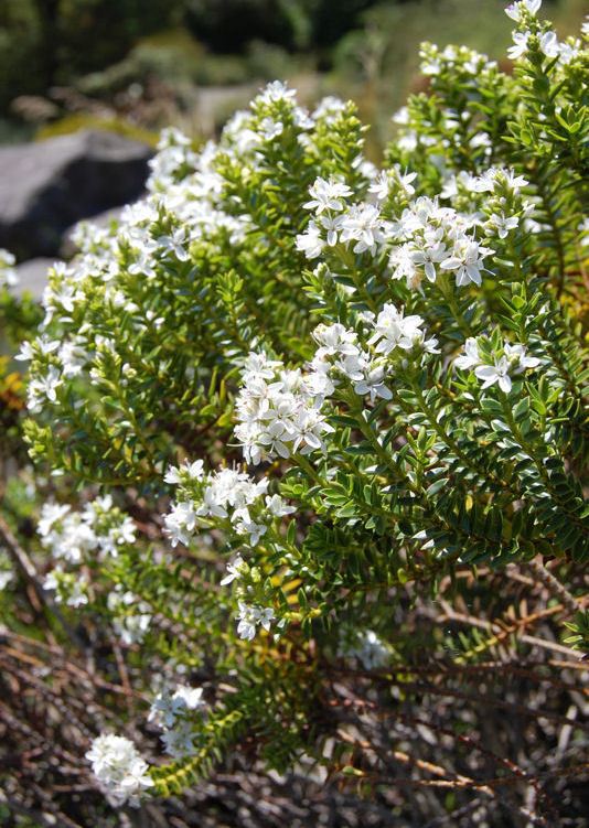A compact, dwarf, evergreen shrub whose small, glossy, dark green leaves are tipped with yellow in the spring. Masses of small white flowers on established plants in early summer. Requires a fertile, well drained soil in sun. Height 1½ to 2 feet tall.