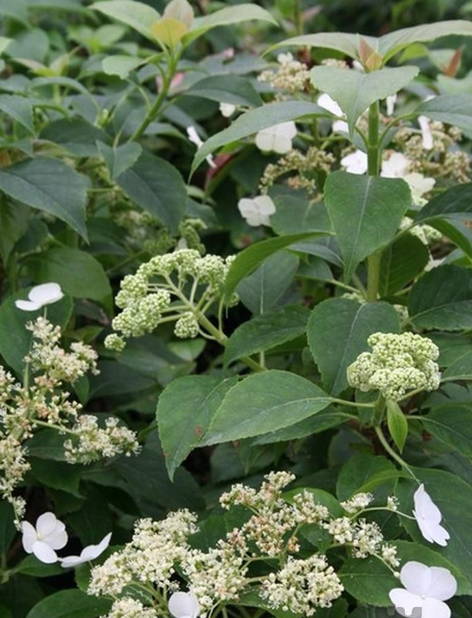 A deciduous climbing shrub which will cling to walls, fences and tree trunks. Heads of white flowers in July. Best grown in a moist fertile soil facing north or west. Height 15 to 20 feet.