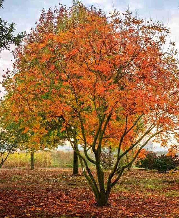 A lovely deciduous, spreading tree with mid green leaves, turning yellow in autumn. Bears sprays of yellow flowers in summer, followed by inflated, bronze pink fruits. Requires full sun and well drained soil. Height and Spread 20 feet.