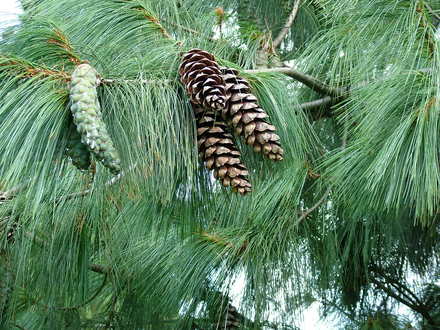 Dwarf Himalayan Pine. A lovely compact evergreen conifer with a dense, round head formed of short, silvery blue needles. Requires a fertile, moist but well drained soil in sun or light shade. Height 6 feet in 10 years.