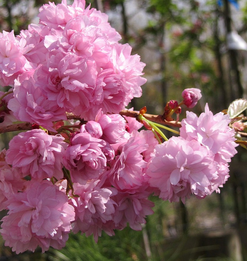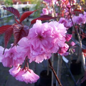 The well known Japanese weeping cherry whose branches are wreathed with large double pink flowers in May. Requires a fertile, well drained soil and flowers better in sun. Height 8 feet by 10 feet spread.